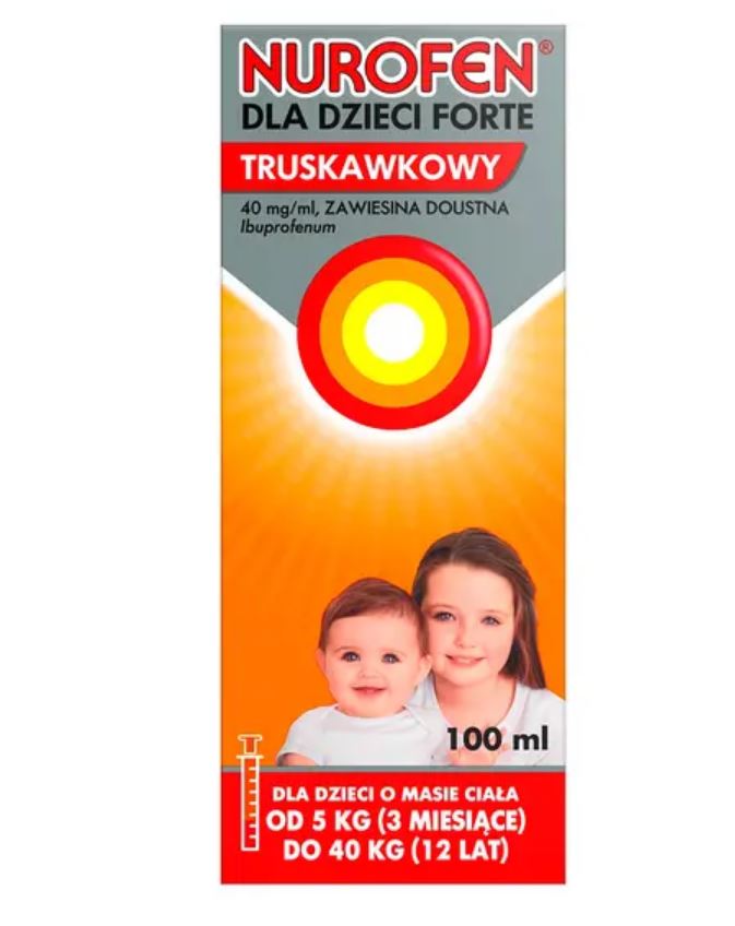 Nurofen forte – симптоматичне лікування лихоманки та болю різного походження у дітей віком від 3 міс до 12 років з масою тіла ≥5 кг (включаючи лихоманку після імунізації, гострі респіраторні вірусні інфекції, грип, біль при прорізуванні зубів, біль після видалення зуба, зубний біль, головний біль, біль у горлі, біль при розтягненні зв’язок та інші види болю, у тому числі запального ґенезу).