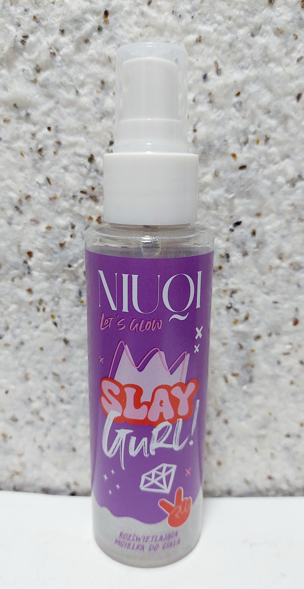 Парфумований блискучий спрей для тіла Niuqi Slay Gurl з сріблястими блискітками, 100 мл