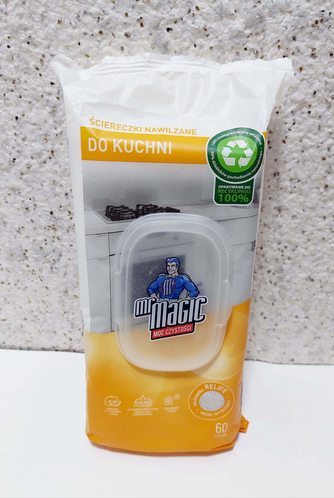 Вологі двохсторонні серветки ДЛЯ КУХНІ “Mr Magic” НОВА ФОРМУЛА, дуже добре усувають жир і різні забруднення, одна сторона серветки чистить, інша – полірує, містять лимонну кислоту і соду, 60 шт.